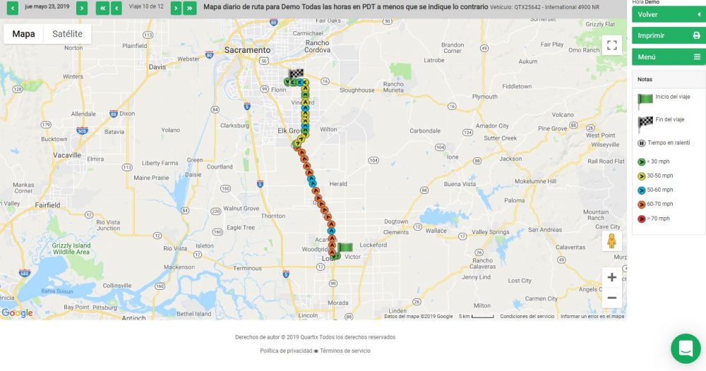 Con nuestro mapa de monitoreo vehicular respaldado por Google, usted puede acceder a toda la información de sus vehículos y conductores para acceder a hojas horarias y mapas de recorridos diarios.